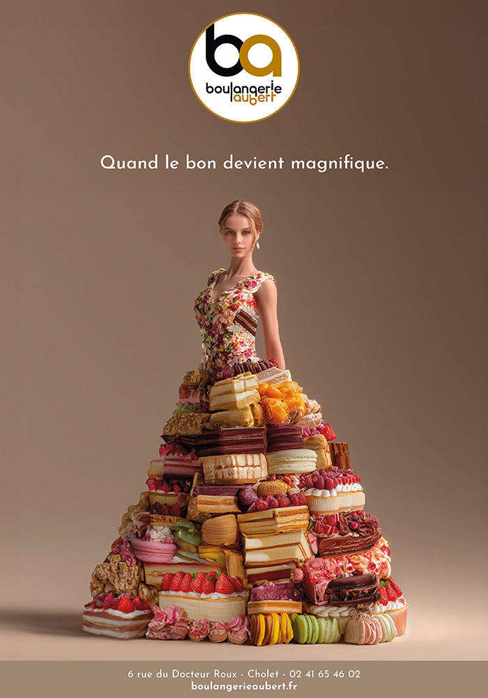 Nous avons imaginé pour la Boulangerie Aubert une campagne audacieuse et raffinée, où la pâtisserie devient haute couture. 6 femmes. 6 créations. 6 univers pâtissiers. De la robe en chocolat à la silhouette en macarons, chaque visuel sublime l’alliance du luxe, de la créativité et du savoir-faire artisanal. Ce concept unique positionne la Boulangerie Aubert comme une maison d’exception, à la croisée de la mode et de la gastronomie. Une véritable déclaration visuelle qui célèbre l’élégance… et l’envie.